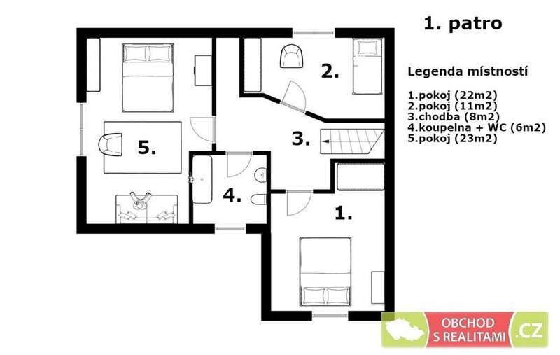 Dispoziční plány domu s výměrou jednotlivých místností přikládáme.