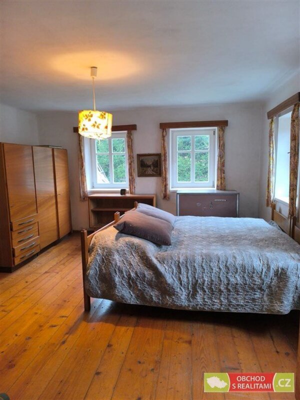 V patře je další ložnice a prostorná půda vhodná k dostavbě dalších