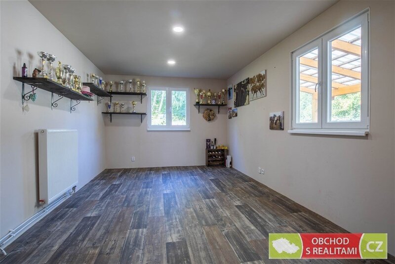 i WC). V celém domě je příjemné podlahové topení, v obývacím pokoji