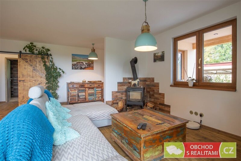 i WC). V celém domě je příjemné podlahové topení, v obývacím pokoji