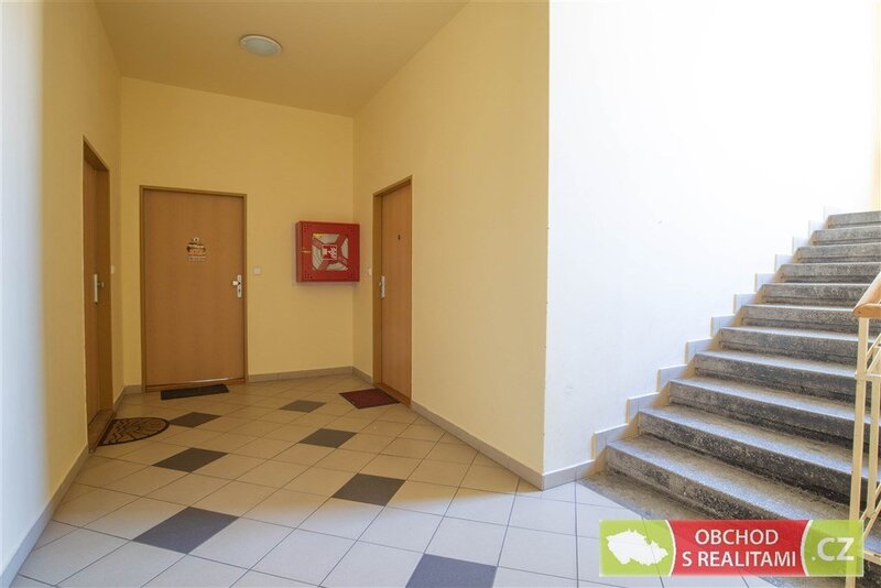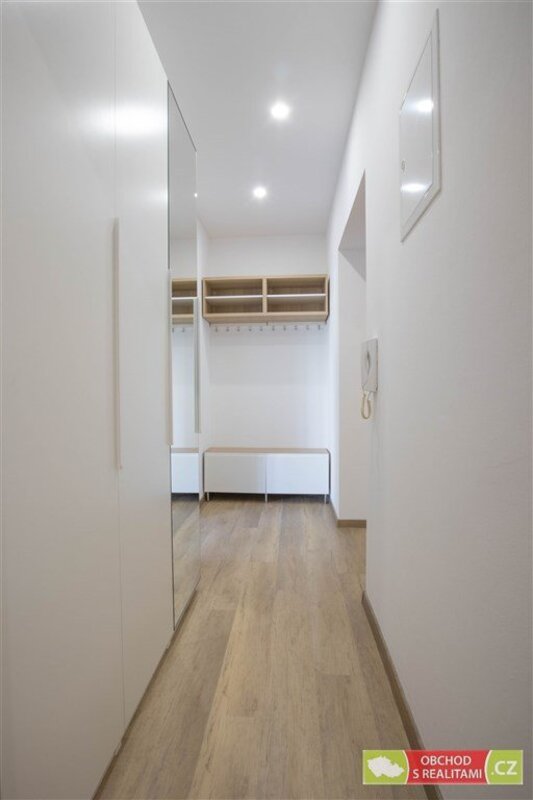 pračka se sušičkou, v chodbě jsou nové skříně. Z obývacího pokoje je