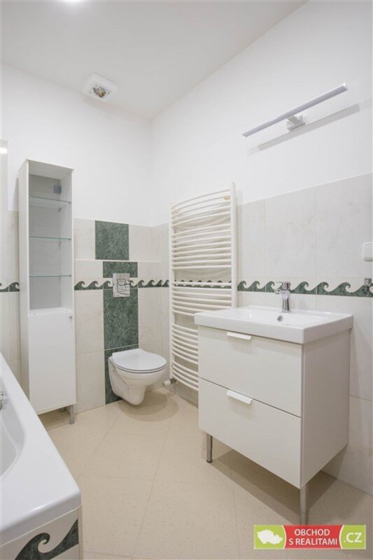 s mrazákem, elektrická trouba, varná deska, digestoř) v koupelně je nová