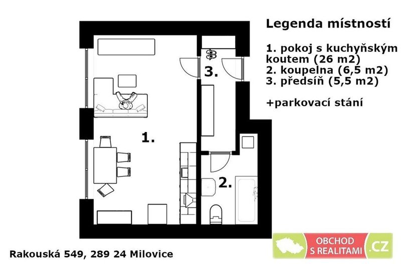 Milovice byt 1+KK s parkovacím stáním na vlastním pozemku
