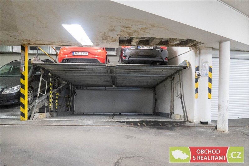 Velkou výhodou tohoto bytu je garážové stání v zakladači (není vhodné pro SUV) v suterénu domu.
