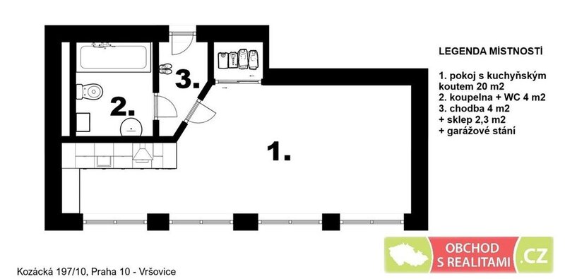 Velmi světlý byt o výměře 27,5 m2 a se sklepem 2,3 m2 se nachází v druhém patře moderního bytového domu s výtahem v žádané lokalitě na adrese Kozácká 197/10, Praha 10/ Vršovice.