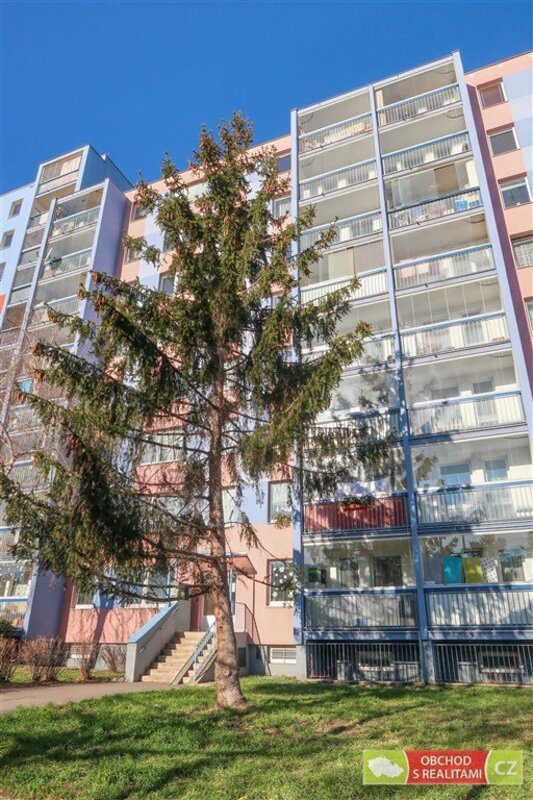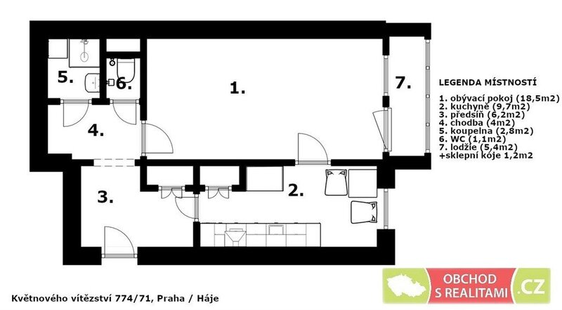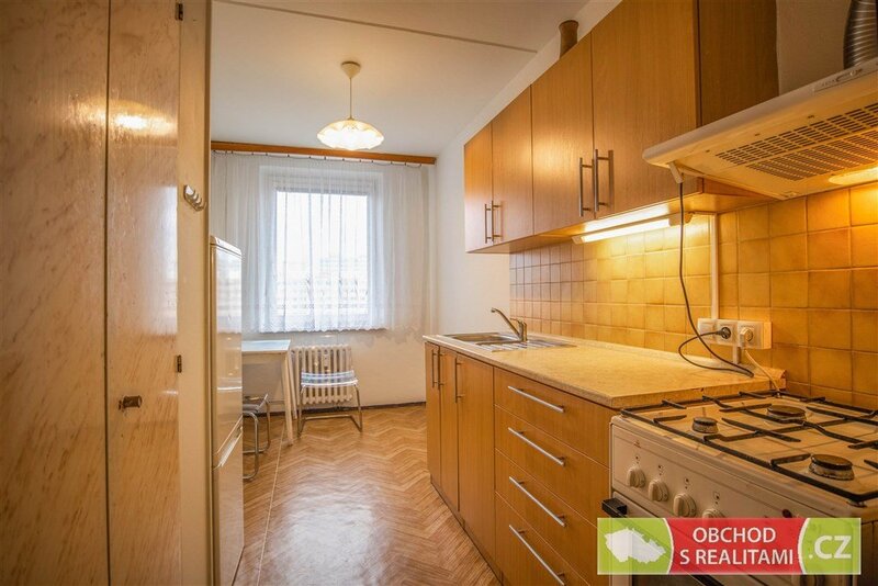 Bytová jednotka 1+1 s lodžií a sklepem se nachází v předposledním 6. patře panelového domu na adrese Květnového vítězství 774/71, Praha / Háje.