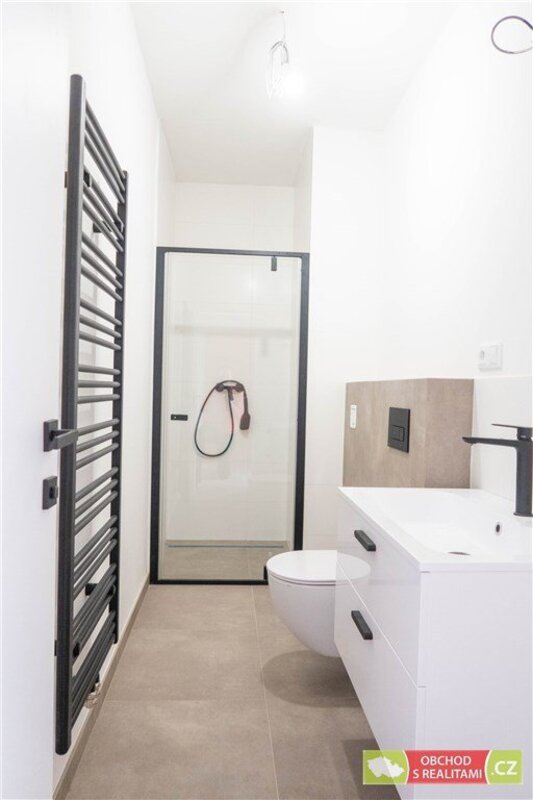 myčkou. V koupelně je sprchový kout a bude dovybaveno zrcadlovou skříňkou