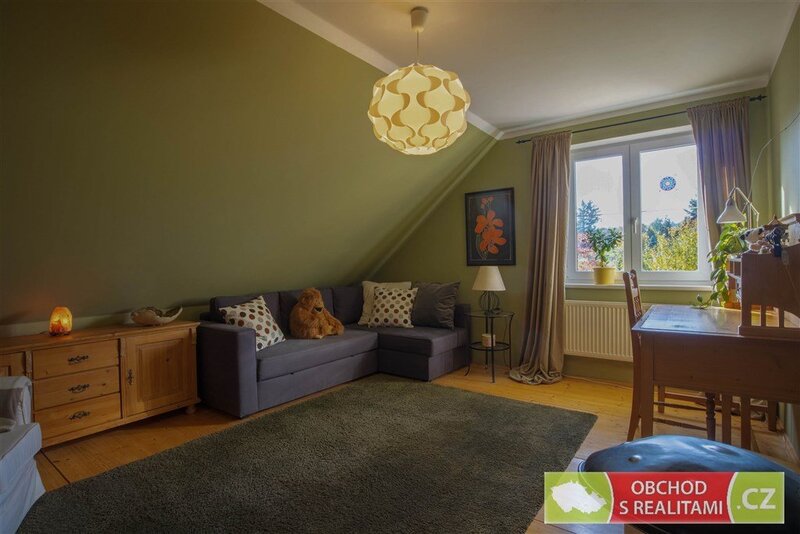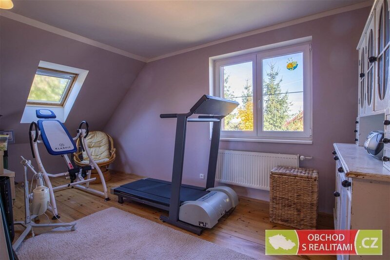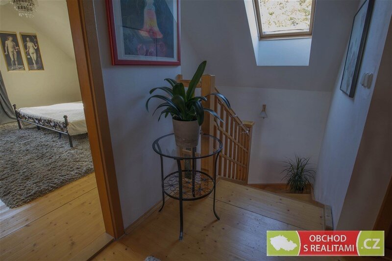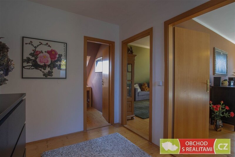 (21 m2), zádveří, předsíň, komora a WC. V patře jsou pak tři