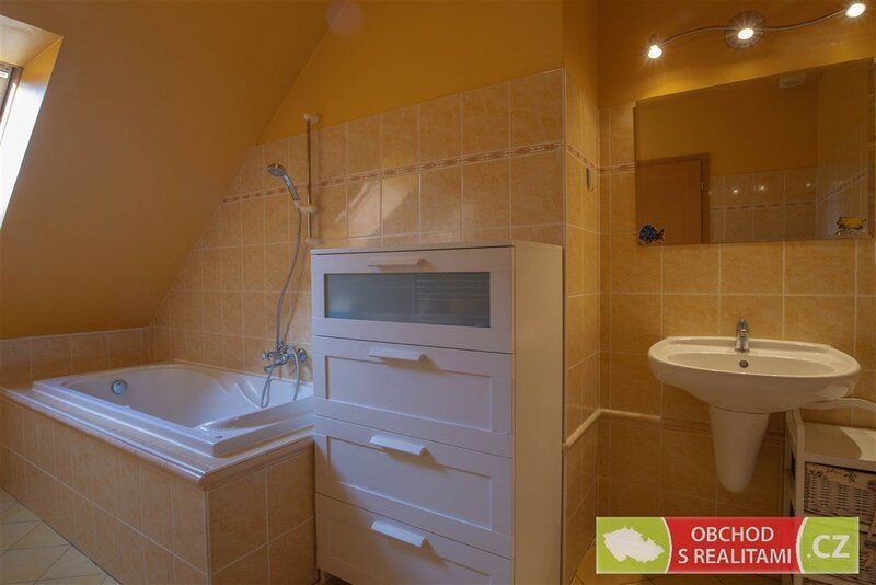 Dům je napojený na veřejnou kanalizaci i vodovod, na pozemku je i studna,
