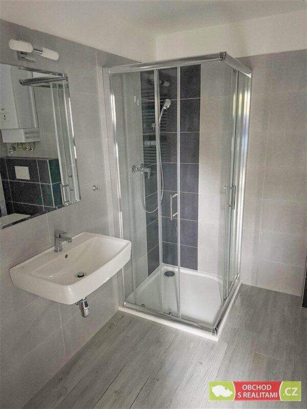 Jednotka je téměř nová, vybavená kuchyňkou linkou se sklokeramickou deskou