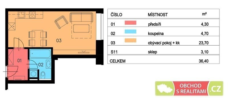 Svojetice u Říčan, nový byt 1+KK / sklep